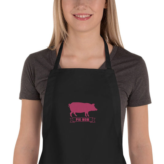 Proud Pig Mom Embroidered Apron Great Gift pretty cool tie back hog swine cooking baking accessories mama mother women girls 4H