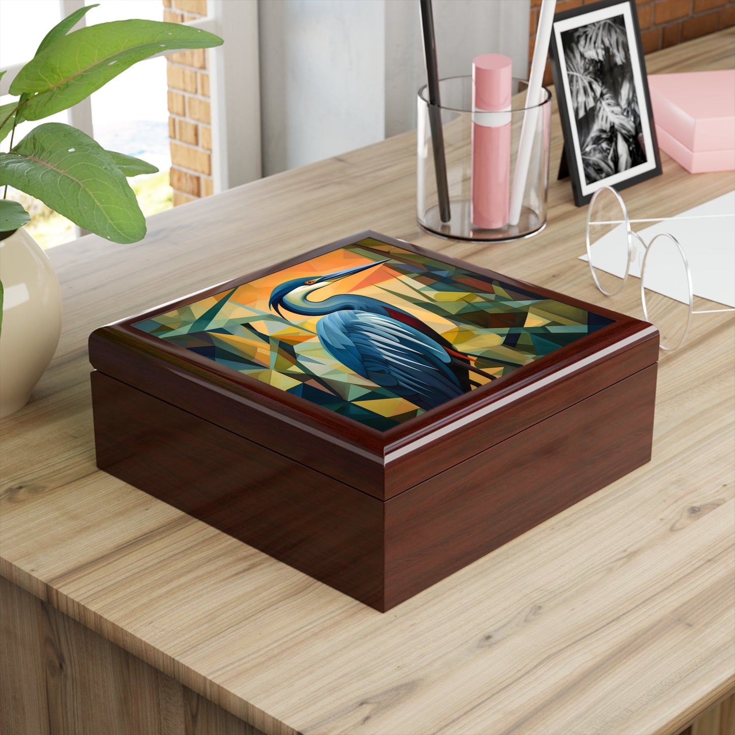 Art Deco Great Blue Heron Fine Art Print Jewelry Keepsake Trinkets Box