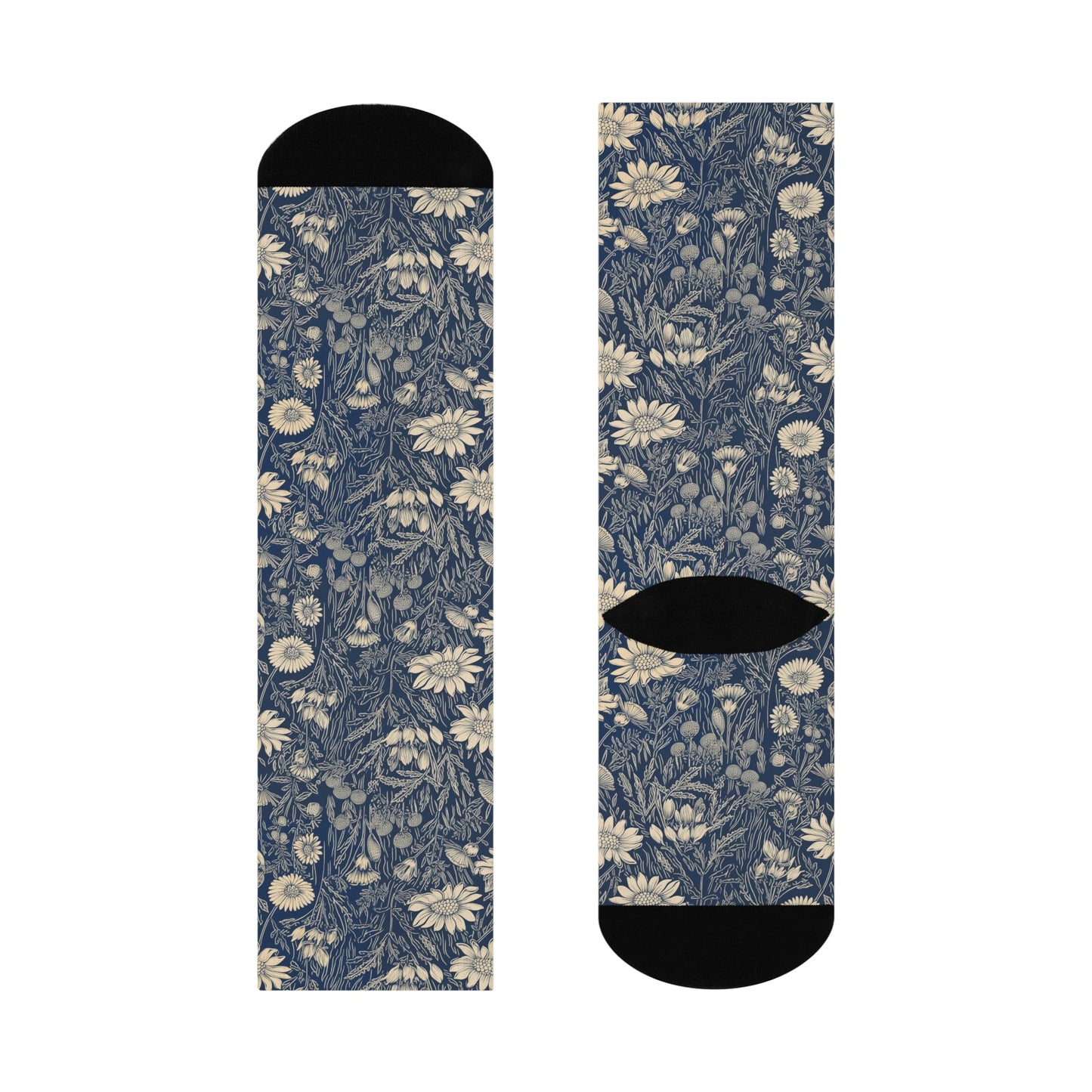 The material is soft and breathable, with a combination of polyester, nylon, cotton, and spandex providing stretchability. They keep your feet feeling cool while their cushioned bottoms give added comfort. With one size fitting up to men's size 12 US, they are also versatile enough to fit both women's and men's feet alike. Moreover, an all-over-print design allows customers to add some character to their footwear with a unique look.