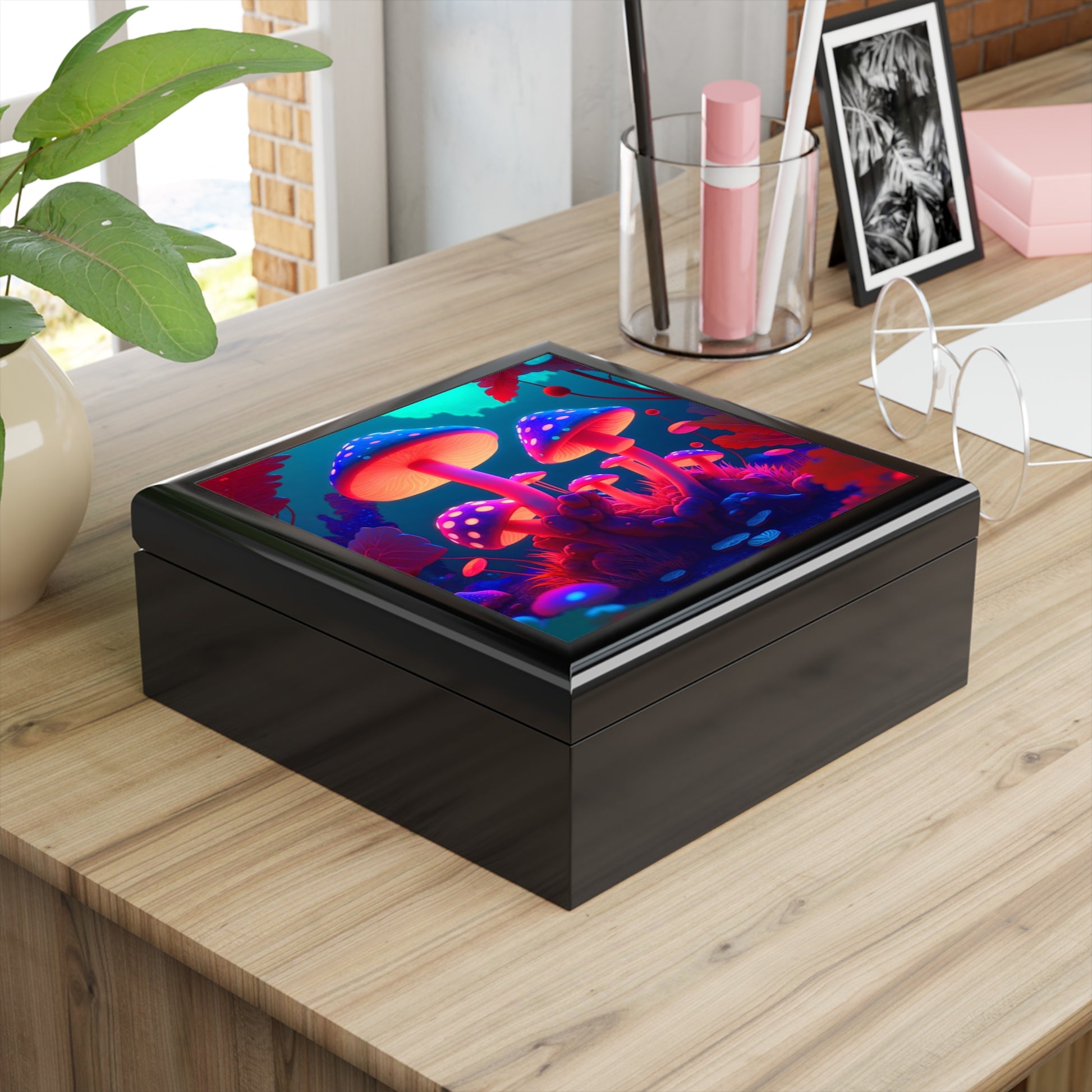 Mushroom Glow Jewelry Box — Neon Fantasy Keepsake Box